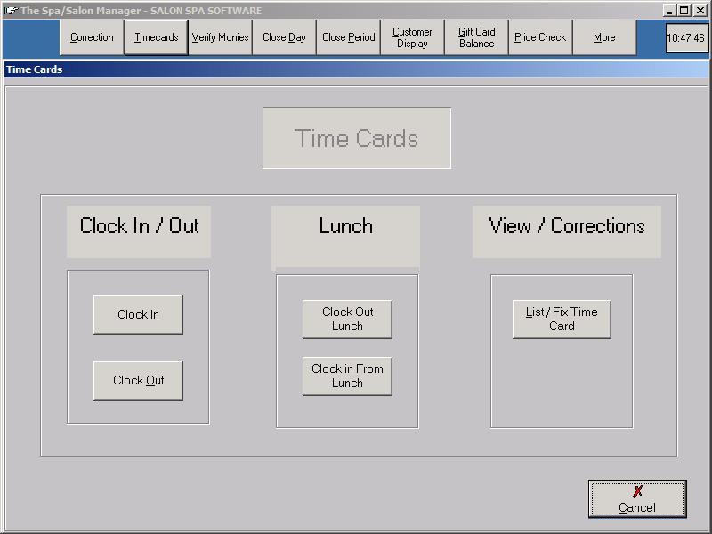 The List/Fix a Time Card allows an employees Clock In or Out time to be